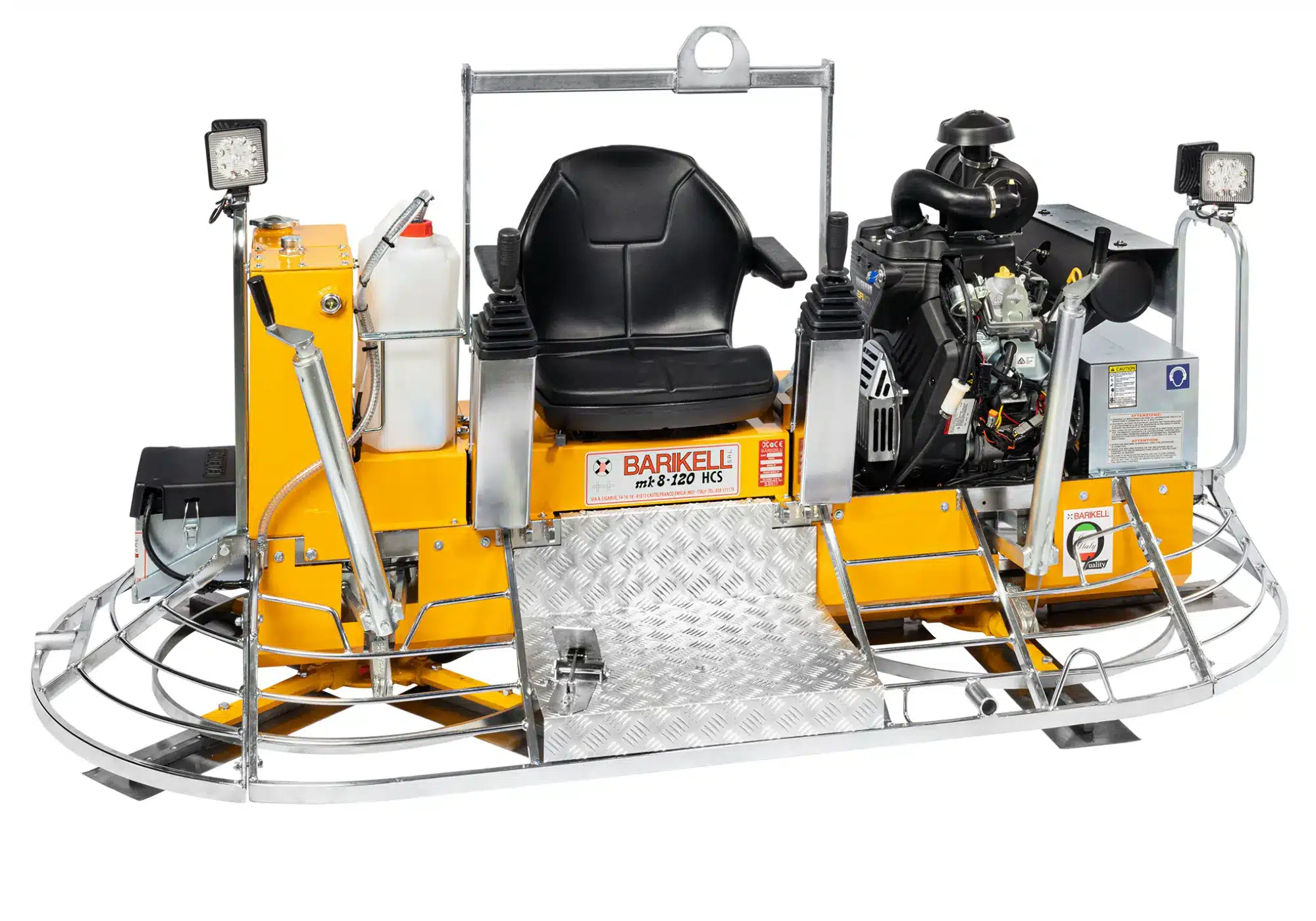 The Barikell MK8-120 HCS (46-inch) is a high-capacity hydraulic ride-on power trowel designed for maximum productivity on large concrete pours. Featuring dual 1200mm rotors, this machine is built to deliver exceptional coverage, consistent finishing quality, and reduced project times on industrial-scale flooring applications.