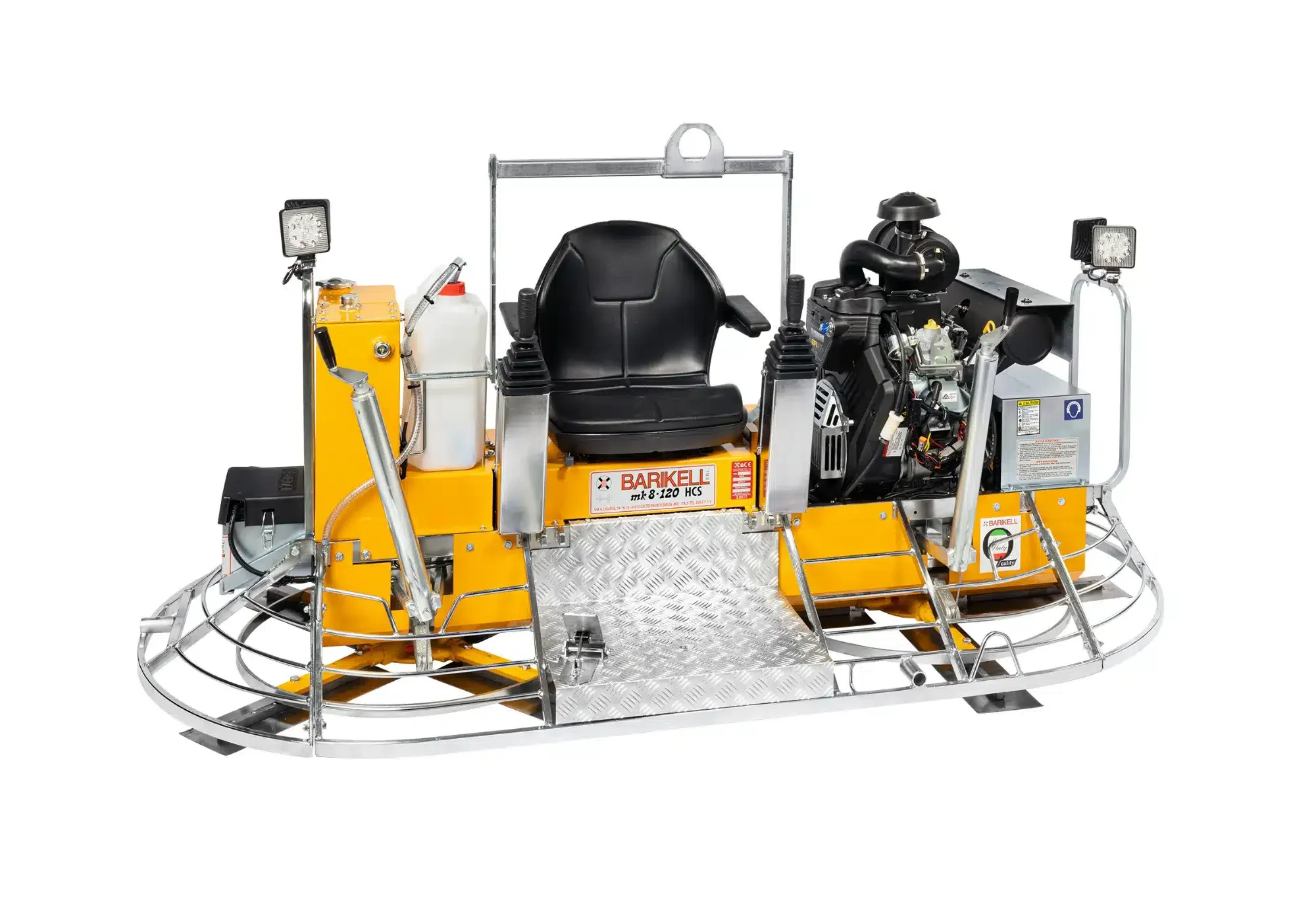 The Barikell MK8-120 HCS (46-inch) is a high-capacity hydraulic ride-on power trowel designed for maximum productivity on large concrete pours. Featuring dual 1200mm rotors, this machine is built to deliver exceptional coverage, consistent finishing quality, and reduced project times on industrial-scale flooring applications.