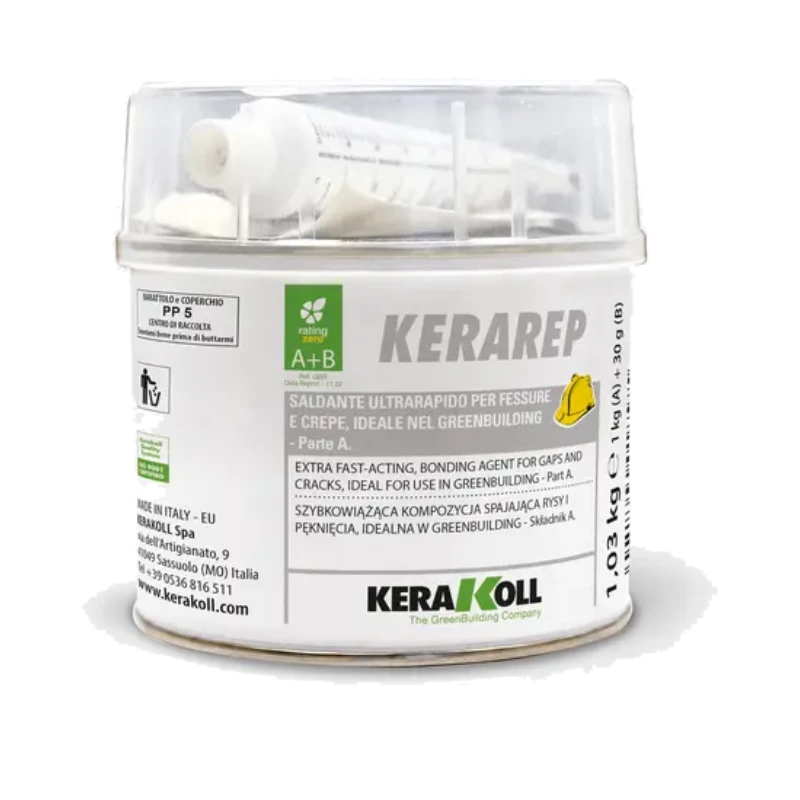 Kerakoll Kerarep Crack Repair Kit develops a high level of adhesion and fluidity thereby guaranteeing the monolithic continuity and total filling even of millimetric gaps and cracks in damaged structures, before laying the covering.