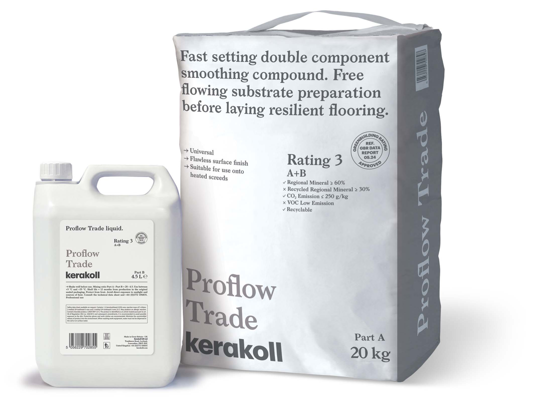 Kerakoll Proflow Trade a Fast setting double component smoothing compound. Free flowing substrate preparation before laying resilient flooring.