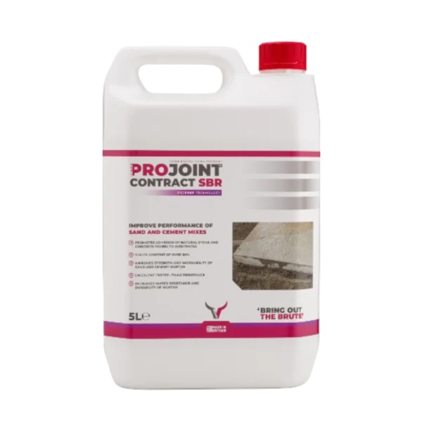 Nexus ProJoint Contract SBR products are a water-based emulsion of a modified styrene-butadiene polymer, designed to enhance the strength and workability of sand and cement mortar. They can also be used for priming the surface of natural stone, cement slabs, or setts to promote adhesion.